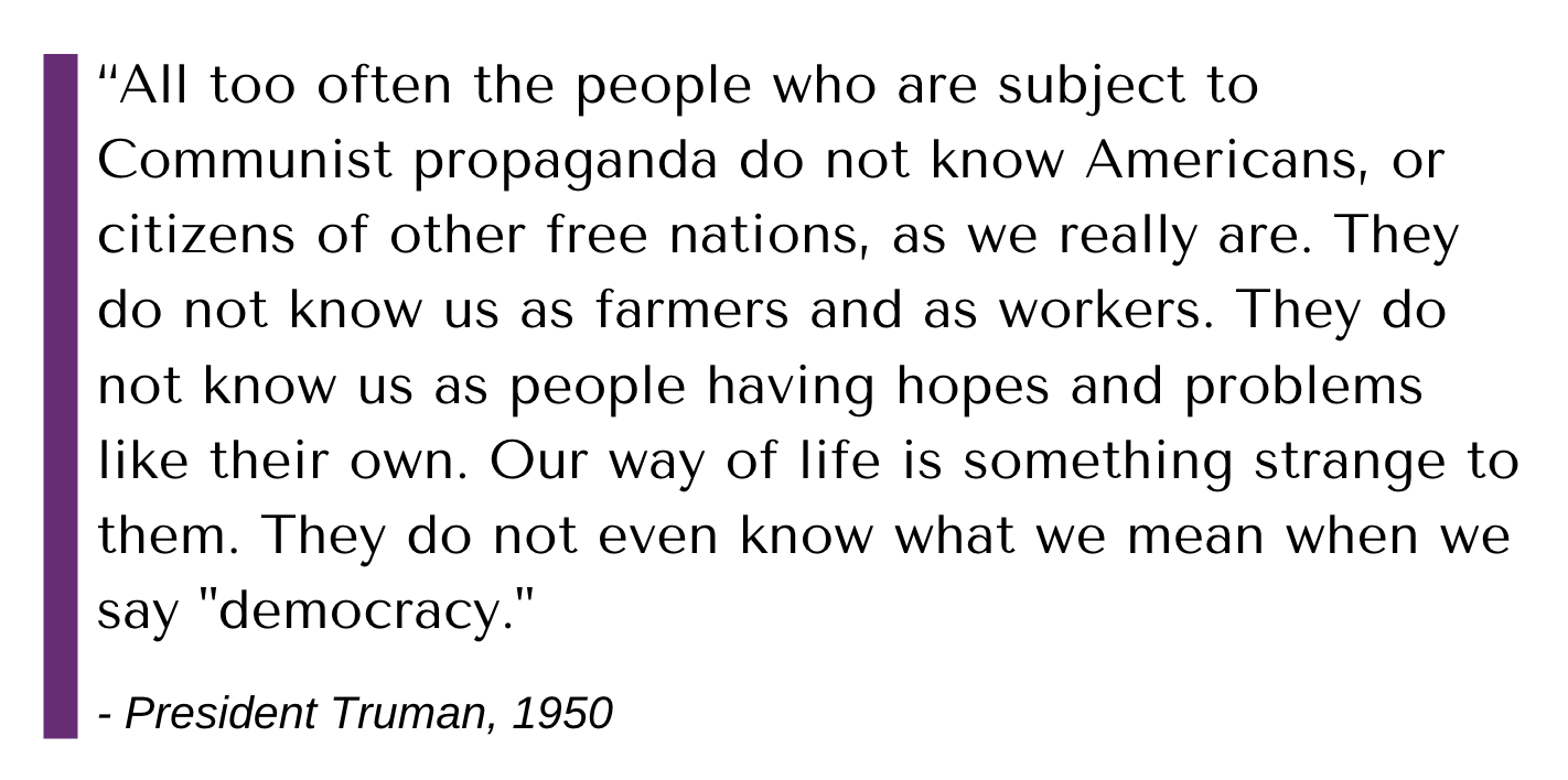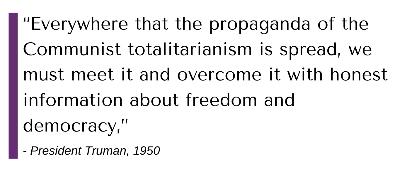 The influx of Soviet propaganda and the necessity of repairing the US’s reputation abroad prompted President Truman to engage in a “Campaign of Truth."