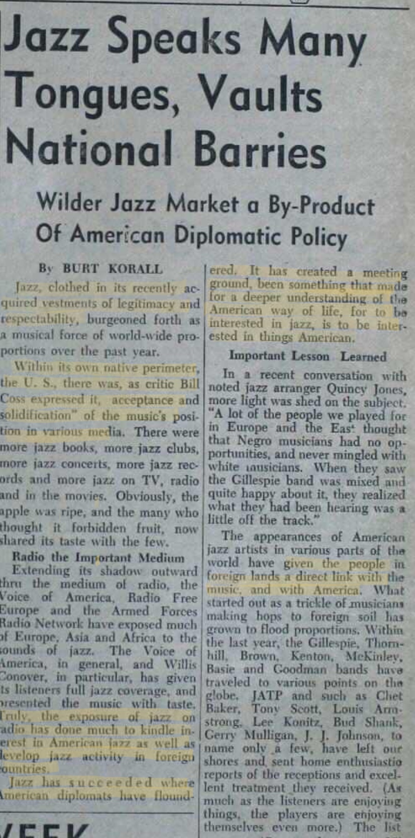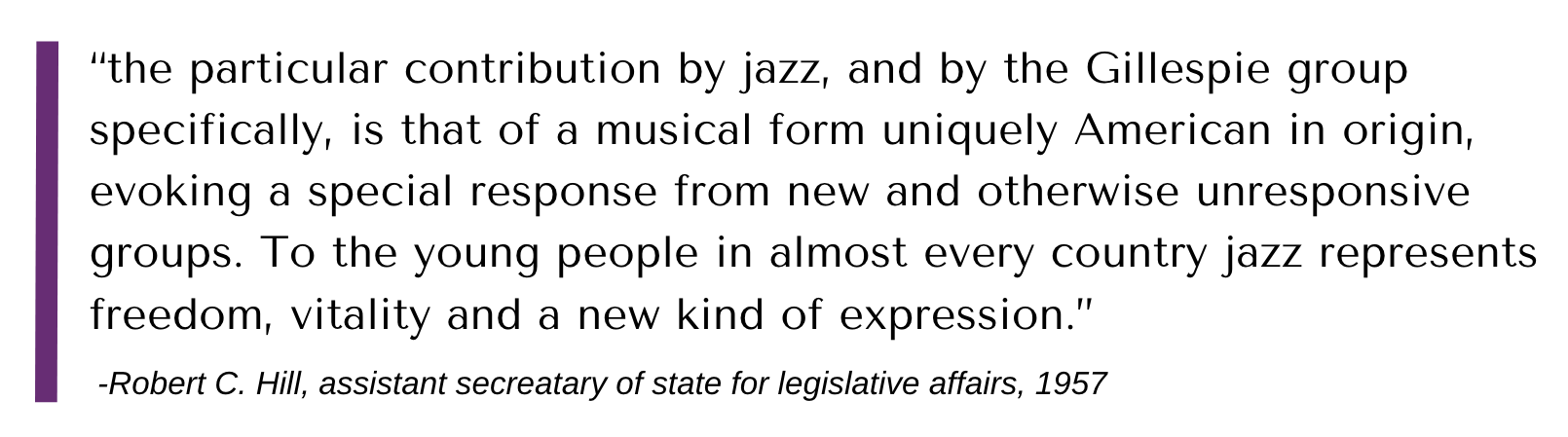 The tours also introduced new audiences to jazz and provided inspiration for musicians abroad - creating space for jazz musicians around the world.