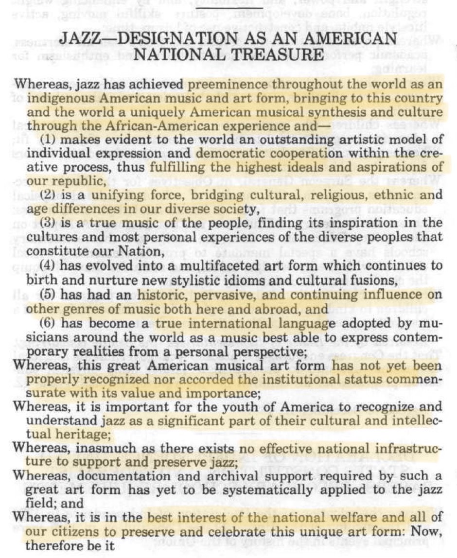 Jazz - Designation as an American National Treasure, December 4, 1987, GovInfo