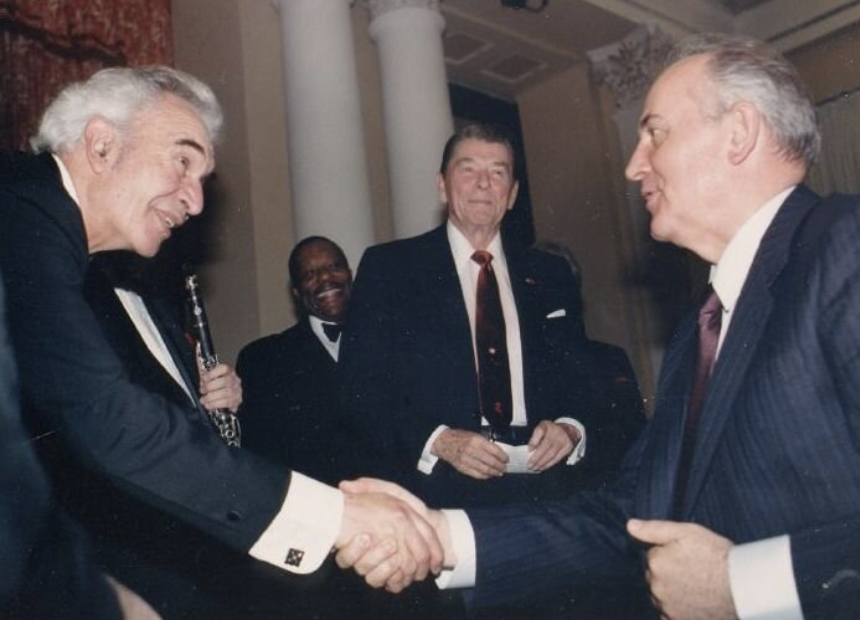 Dave Brubeck, Eugene Wright, Ronald Reagan and Mikhail Gorbachev. Spaso House,