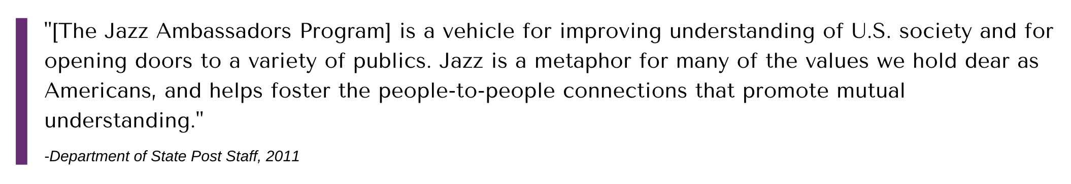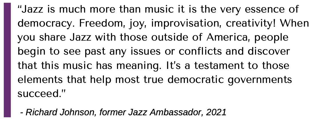 Through the tours, the Ambassadors personified core American characteristics such as freedom, innovation, and inclusion. As such, they helped ease Cold War tensions and directly introduced jazz to people around the world. Furthermore, in a time when African-Americans were rampantly discriminated against, the Ambassadors crossed ideological frontiers in their role as representatives of the state. Today, as reports of a “new Cold War” are rampant, the Jazz Ambassadors serve as an apt reminder of the power of music to cross-cultural, political, and geographical frontiers.